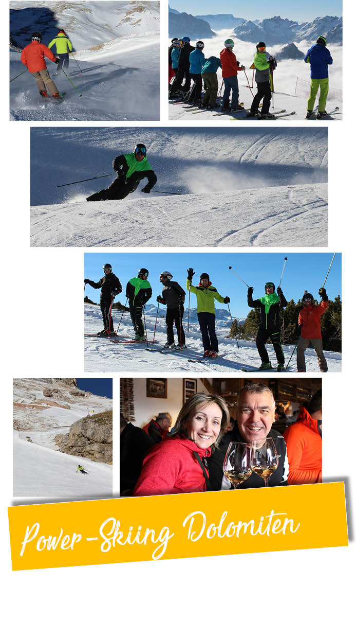 Wir lassen es krachen und rocken die 1200 Pistenkilometer der Dolomiten : Die Weltcuphänge in Alta Badia, die Marmolada, die Saslong in Val Gardena, Cinque Torri, die Sella Ronda und vieles mehr. 6 Power-Skiing-Tage in täglich wechselnden Skigebieten im Herzen der Dolomiten. Eine Ski-Safari der besonderen Art im Herzen der Dolomiten.